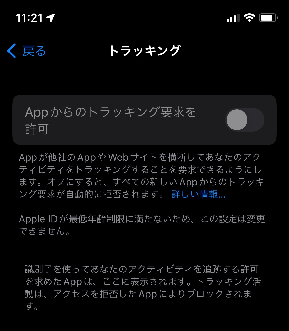 設定>スクリーンタイム>コンテンツとプライバシーの制限 にてAppからのトラッキング要求を許可が許可しないになっているとか。