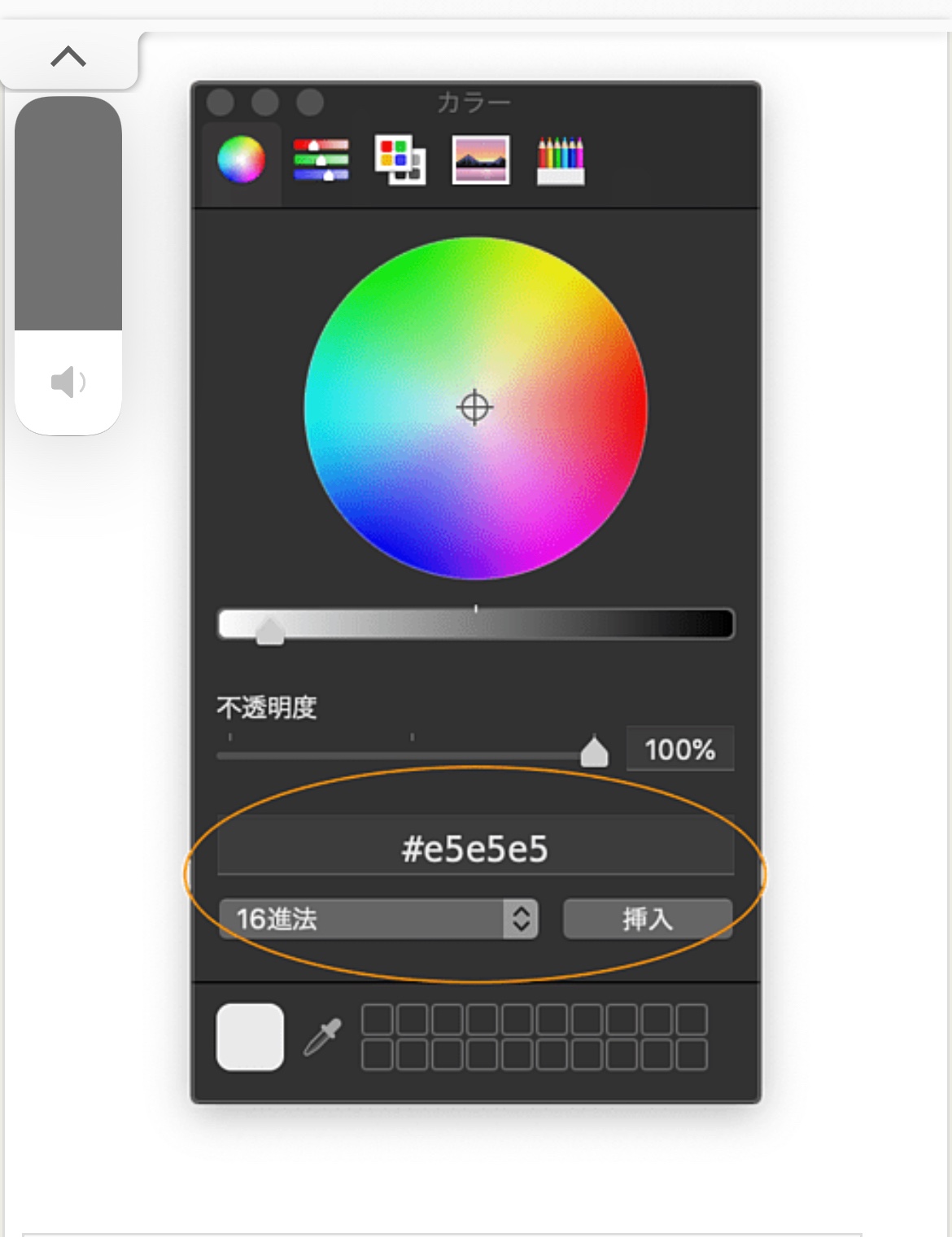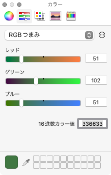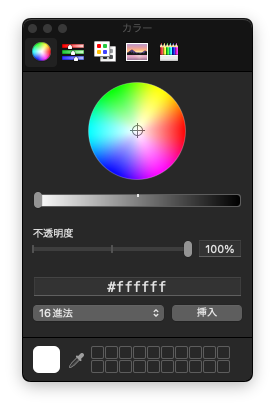 動画編集ソフト内でテキストなどのカラー変更の際使い易くするため、Mac標準のカラーパレットを16進数で入力できたらと方法を探しています。