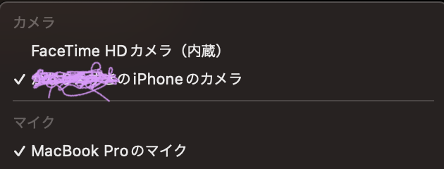 vを押してもiPhoneのカメラとしか表示されず、選択すると当然iPhoneがカメラになる。