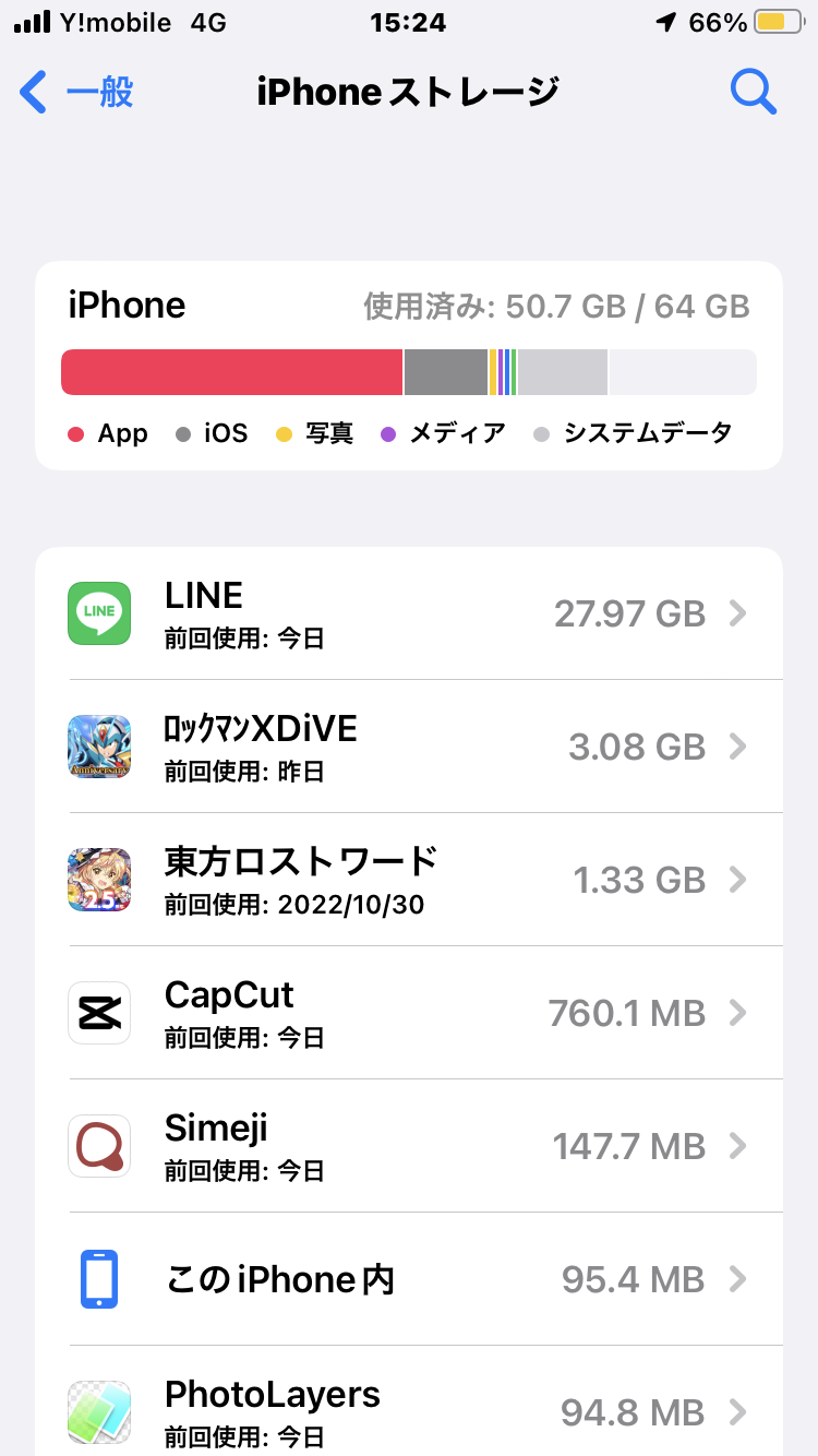 最近iPhoneストレージが急に増えました。アプリを結構消したのですが、全く減りません。