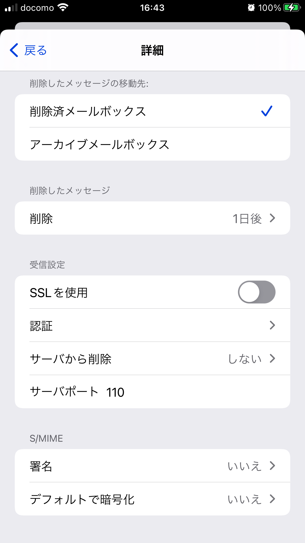 アカウントの項目を開いて、詳細を見てもimapフォルダの指定もiPhoneのフォルダの指定もありません。