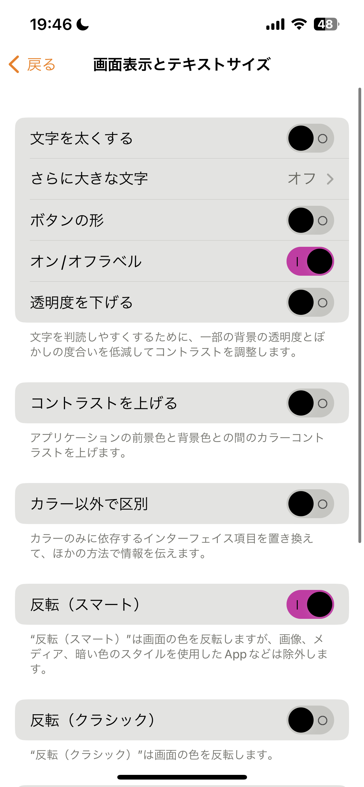 iPhone の電源を入れると勝手に反転(スマート)がONになる