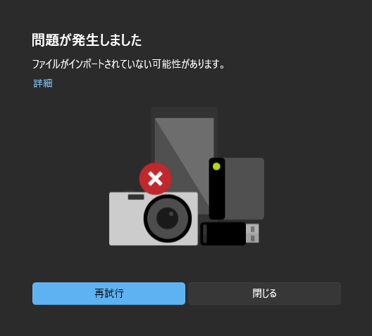 iPhone側からWindowsのアプリ「フォト」を使用して写真をPCにインポートしていたんですが、途中でエラーになってしまいそれ以降の写真が移動できなくて困っています