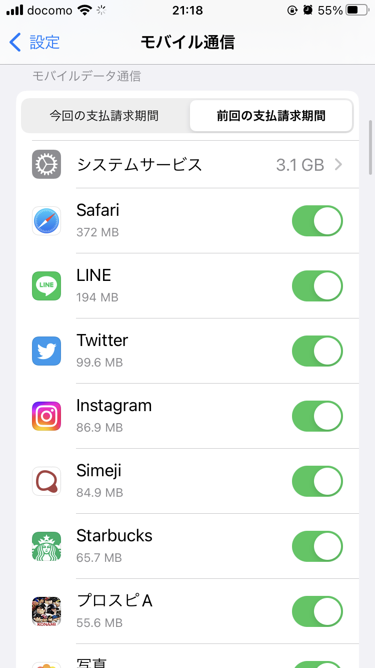 iOS16にアップデートしてからだと思いますが、モバイルデータ通信の消費が激しくなっており、内訳を確認してみるとシステムサービスという項目がトップでした。私は月に3.0GB契約をしているのですが、先月システムサービスだけで3GB以上消費されています。このままでは何もしていなくても通信制限がかかり非常に困っています。何ギガあっても足りません。原因は何でしょうか?また解決策はありますか?因みに自動アップデートは全てオフにしています。