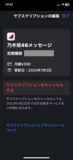 それからサブスクリプションの項目をタップすると、サブスクリプションの編集が表示されいつもの有効とか期限切れとかの表示がされませんでした。