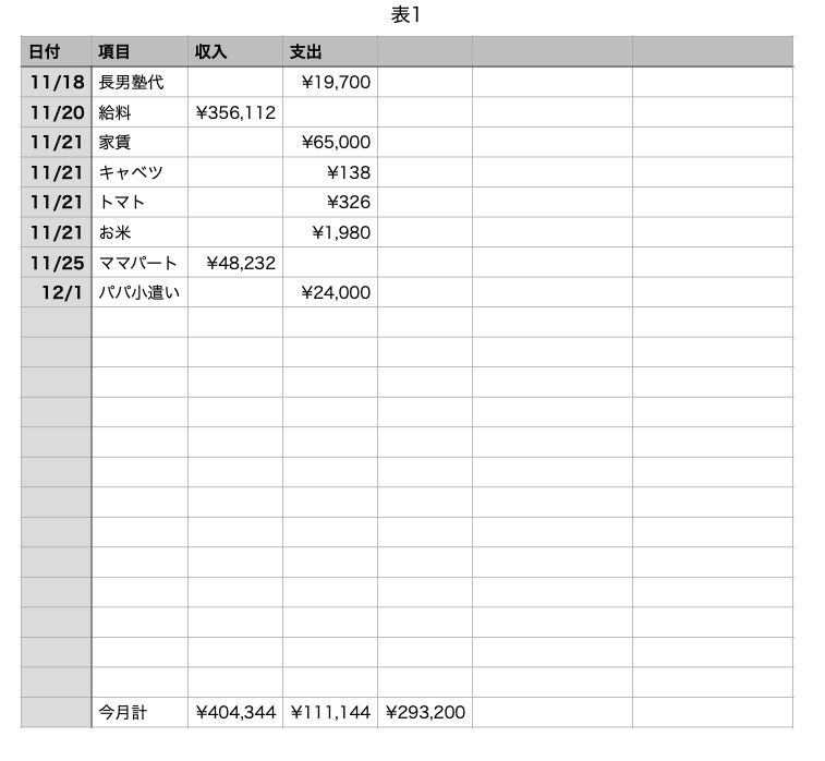 一般的に簡易な家計簿を作るのならこんな感じじゃない?