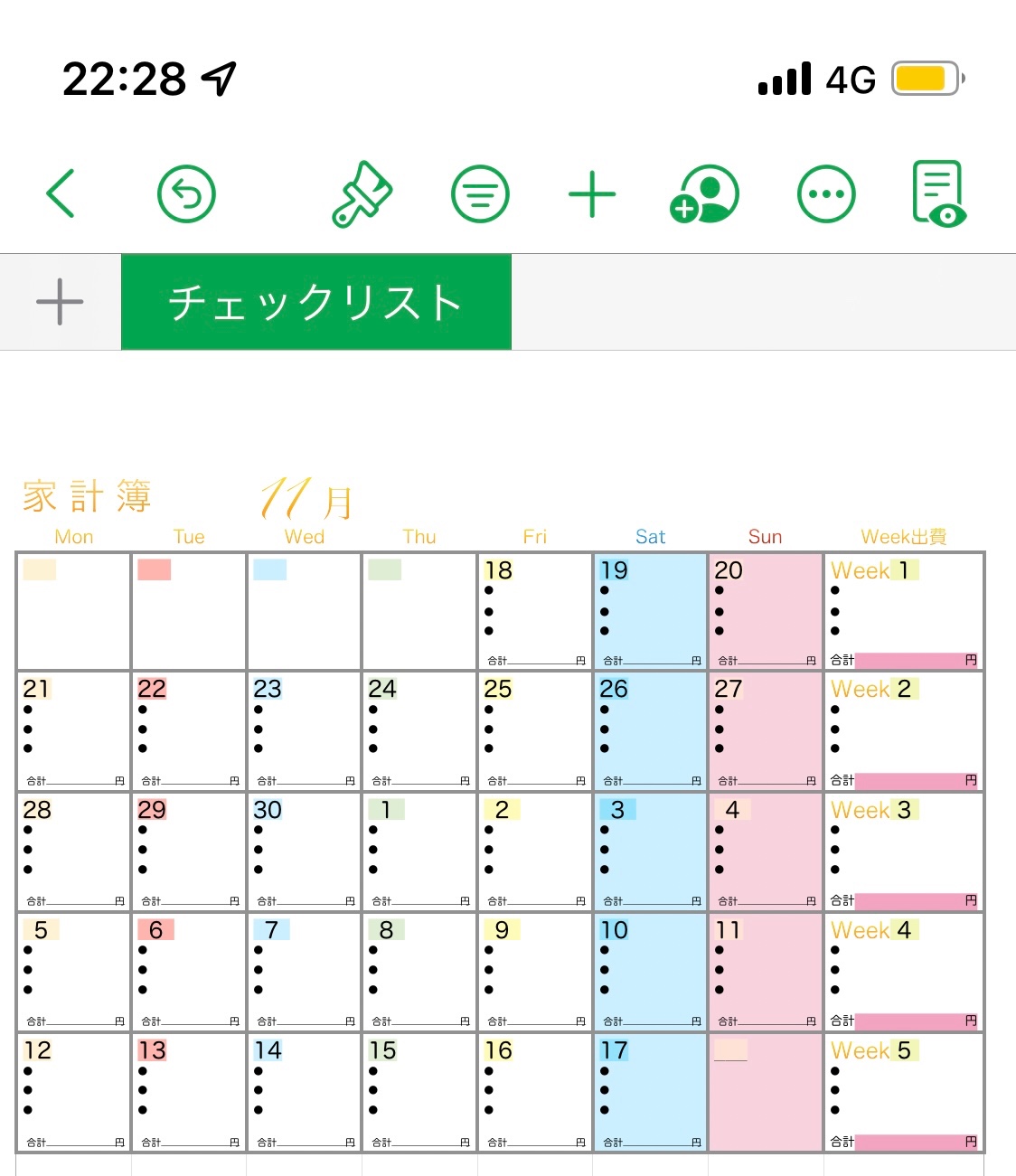 通常テンプレートのカレンダーで家計簿を作ったりはしないと思うのですよ。