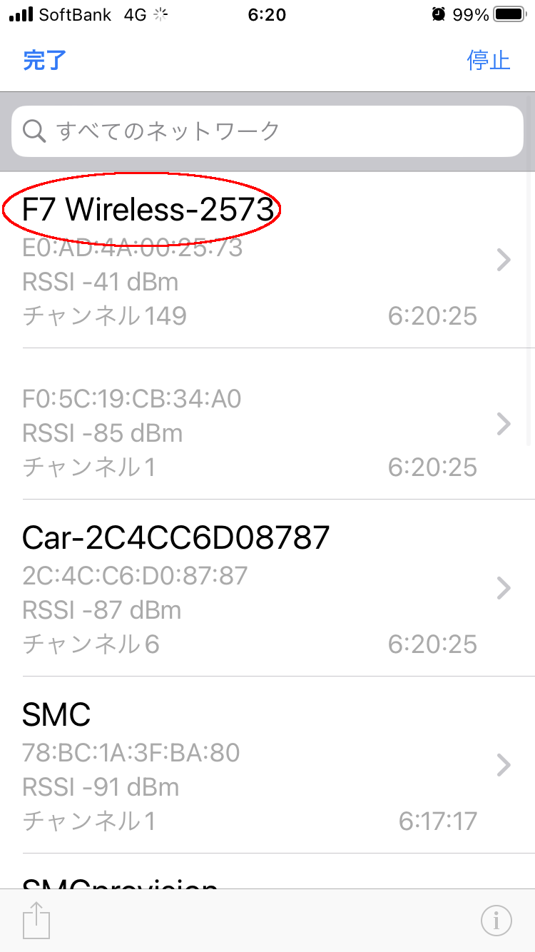 このユーティリティは拾える全ての電波を表示します。うまく接続できるiPhoneとできないiPhoneで比べたら何かわかるかも。