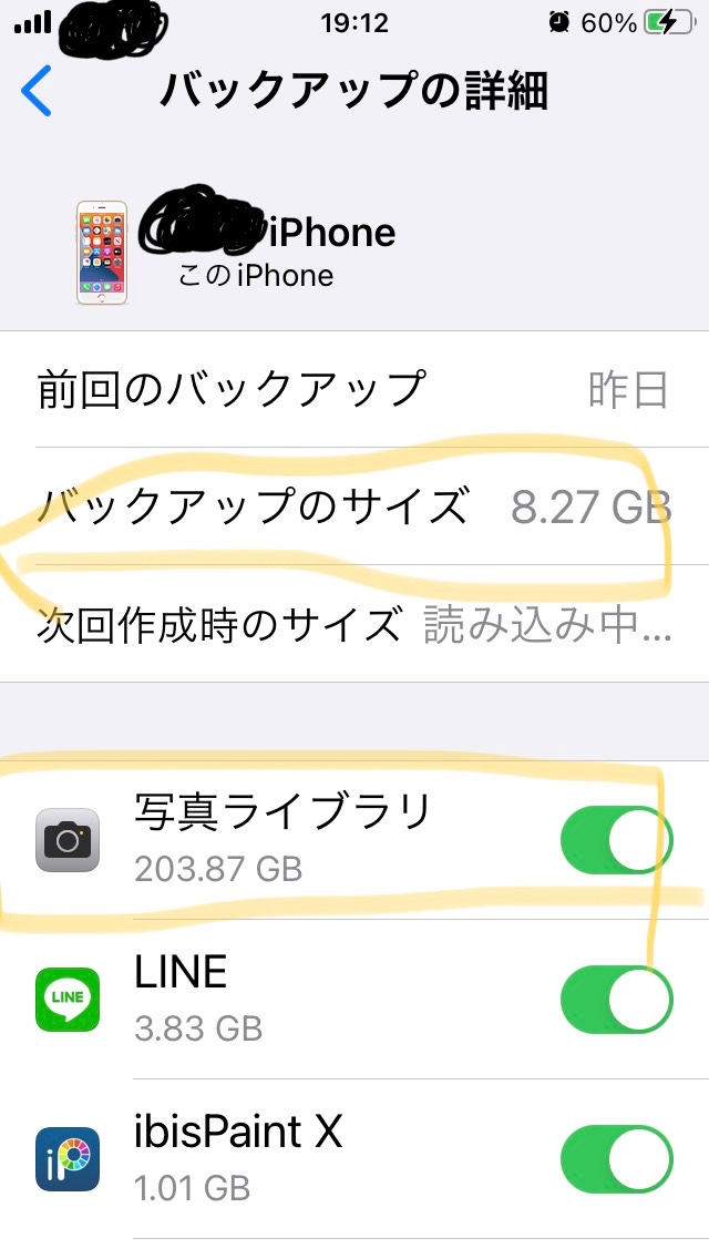 それとも、iCloudバックアップの項目は写真オンにチェックをいれたけど、iCloudの項目に写真の保存オフにしていたので写真のバックアップは取れなかったんでしょうか?