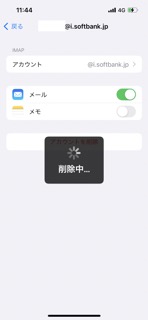 使ってないメールのアカウントを削除したいのですが、削除中で止まったままで、なかなか削除できません。