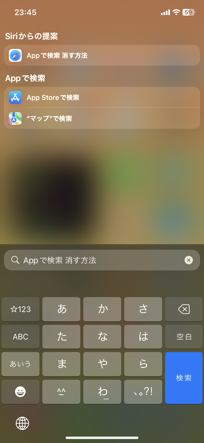 ホーム画面で[🔍検索]を押下(下へスワイプ)すると出てくる画面の「Appで検索」を消す方法を知りたいです。