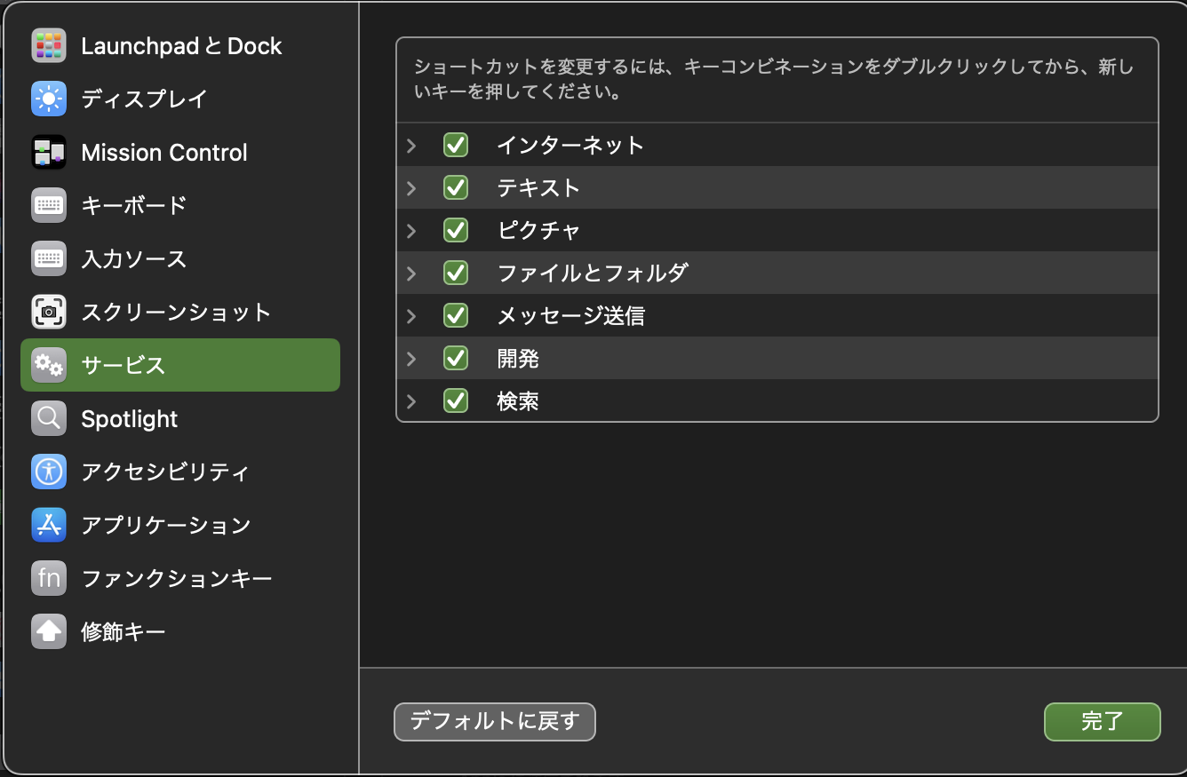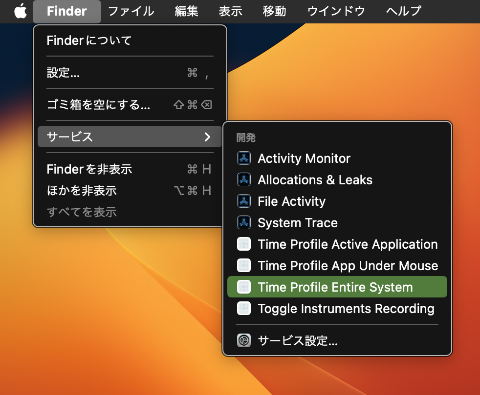 Finderのサービス機能が開発しか表示されません