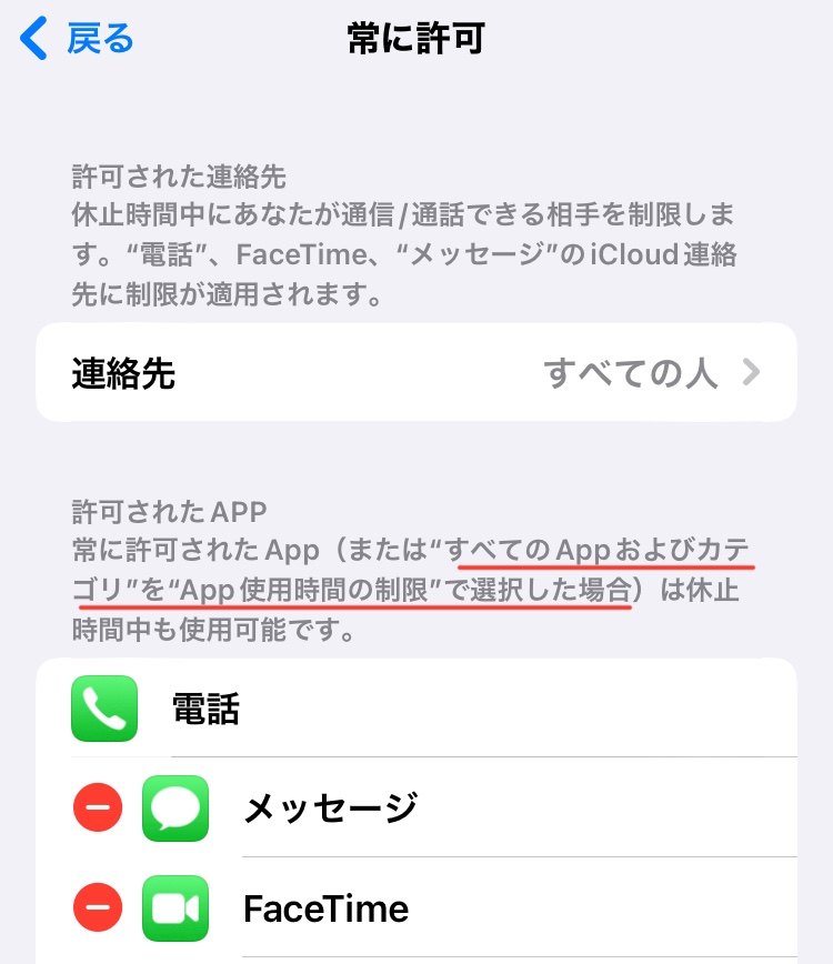 設定>スクリーンタイム>App使用時間の制限>制限を追加>Appを選択の画面で「すべてのAppおよびカテゴリ」の項目にチェックを入れている状態なのですね。