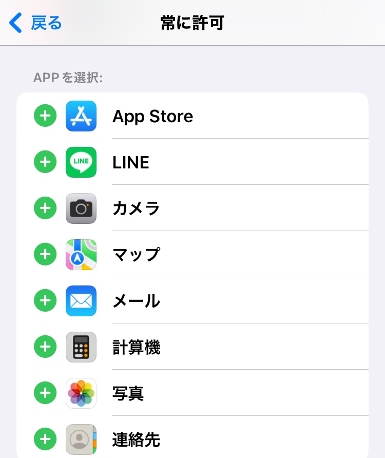 ②その下にある各カテゴリ(SNSやゲーム等)をタップすると右端の「>」が「∨」に変わり、appのアイコンが表示されるので、各appごとにチェックを入れていきます。