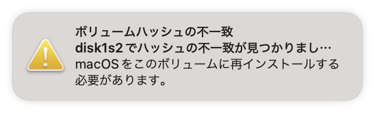 先日、PCの初期化を行なったのですが、それでも「ボリュームハッシュの不一致」の通知が表示されてしまいます。
