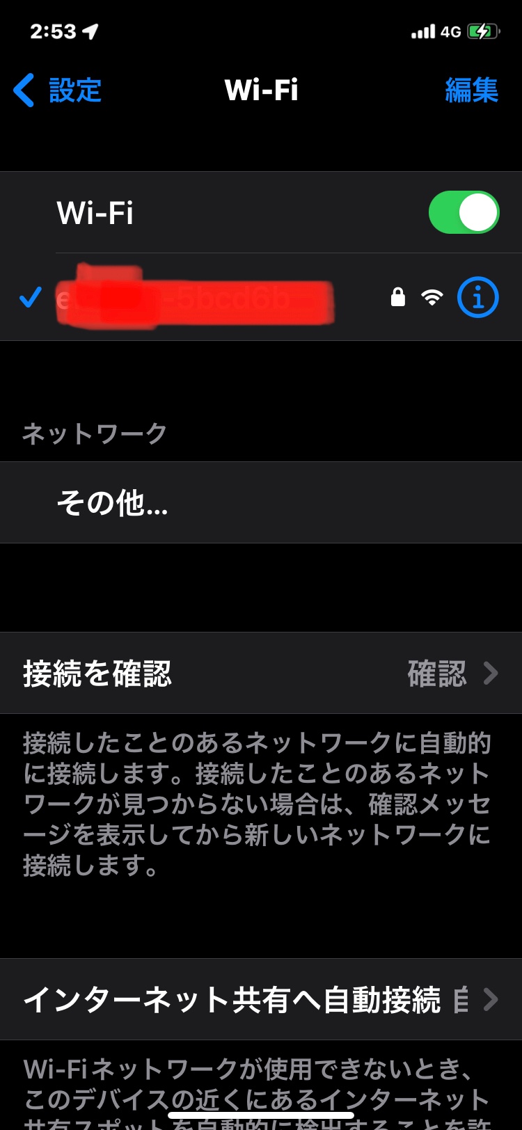 現在wifiの設定画面左端にチェックが入りコメント無しなのに4G回線表示になっています。どうしたらいいでしょうか