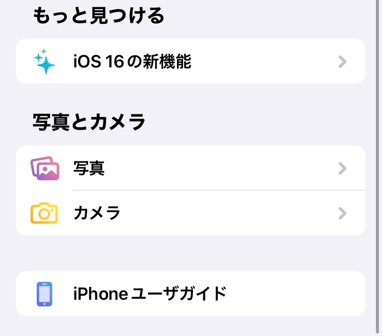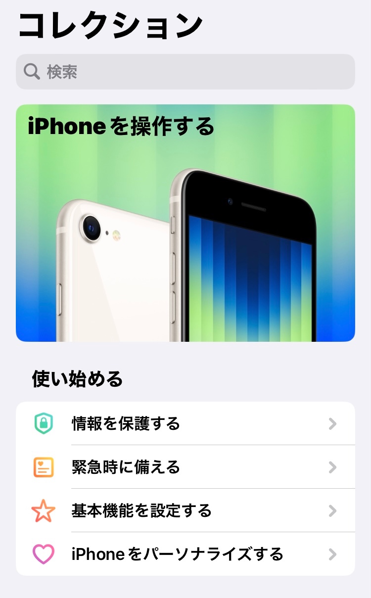 「ヒント」アプリを開き、画面を上向きにスクロールすると一番下にiPhoneユーザガイドがあります。