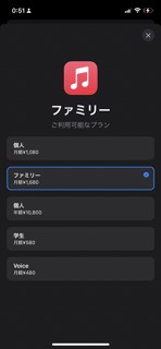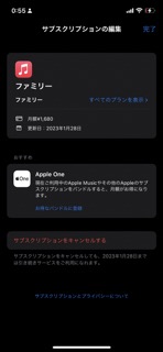 ファミリー共有したが、個人契約のままになっていたので、兄の端末で設定→アカウント→サブスクリプション→Apple Musicのすべてのプランを表示→ファミリー