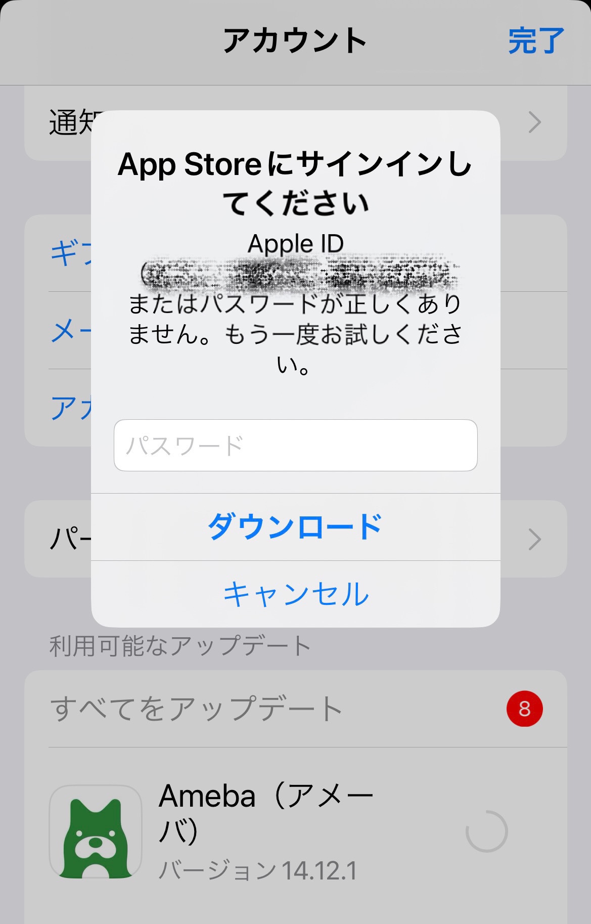 パスワードを入力したら(当たり前ですが)AppleIDが違います、と言われてアップデートができません。