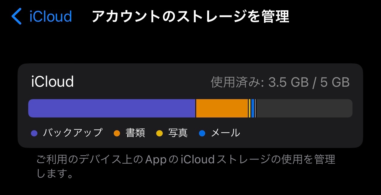 iCloud のバックアップを利用していないにも関わらず、バックアップの利用容量が2.7GBになっています