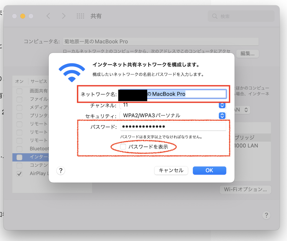 あと、パスワード入力する際には半角英数字(mac側では英数字入力で入力。iPhoneでは英数字のキーボードで入力)で入力してますか?