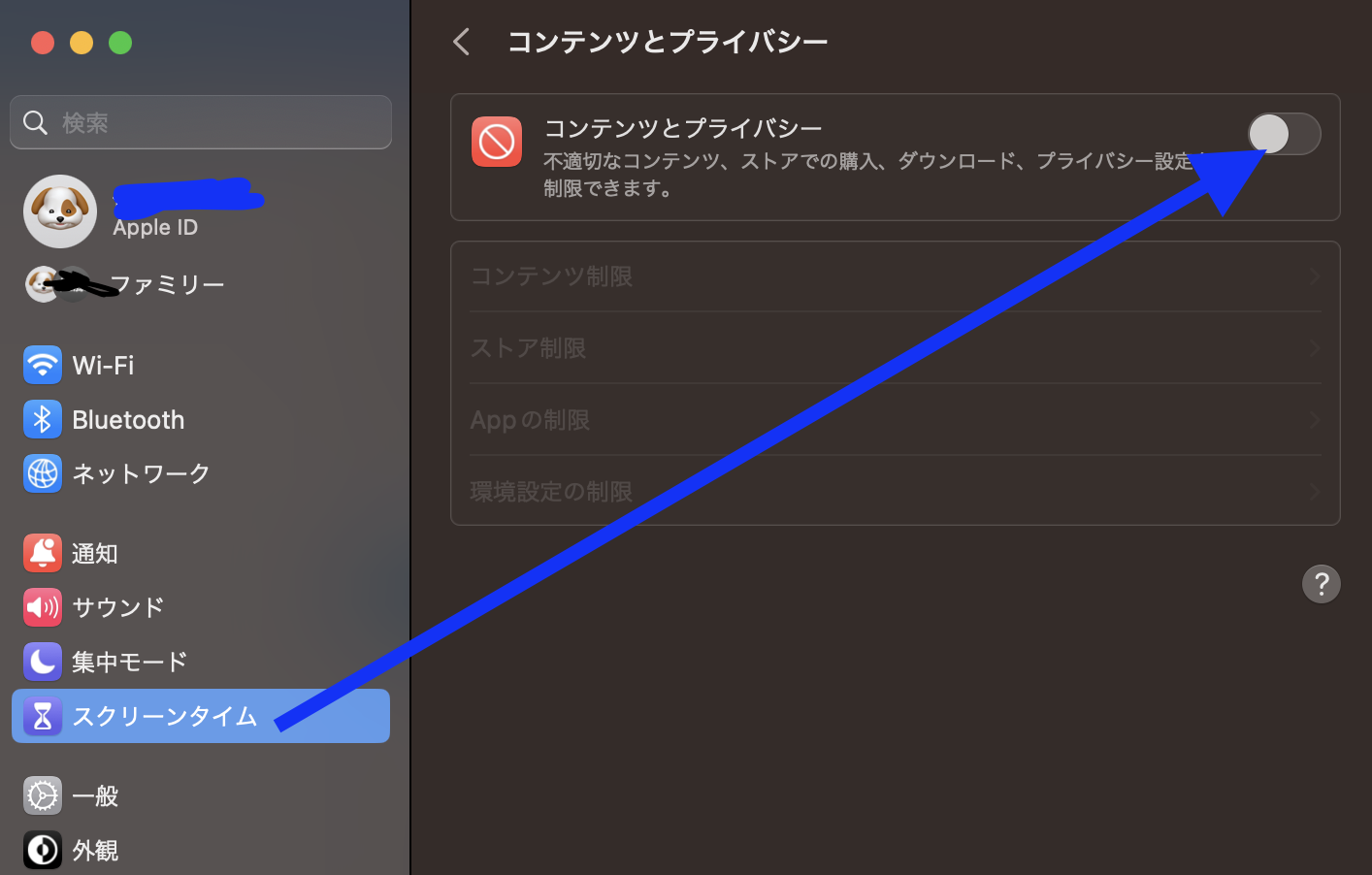 iPhoneでもスクリーンタイムで制限かかっていたのも思い出しました、、、