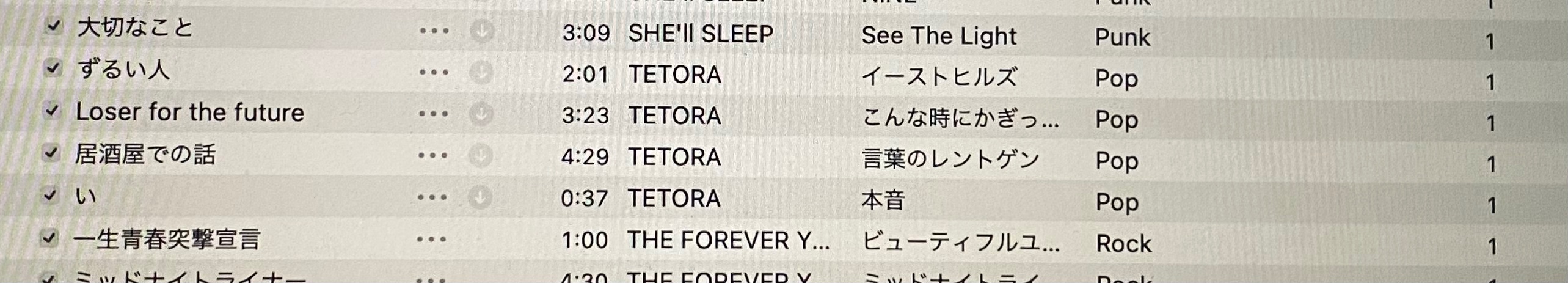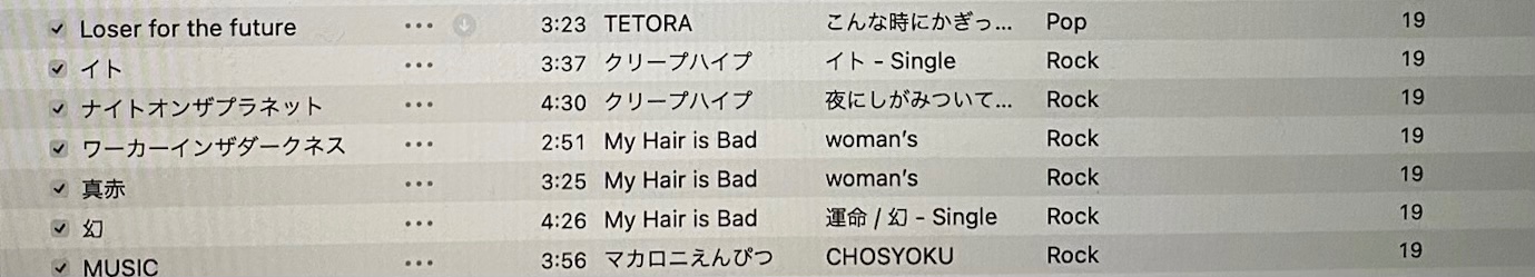 分かりづらいのですが、TETORAのLoser for the futureが19回→1回になっています。他の曲もほとんどこのようになってしまいます。対策を知りたいです。