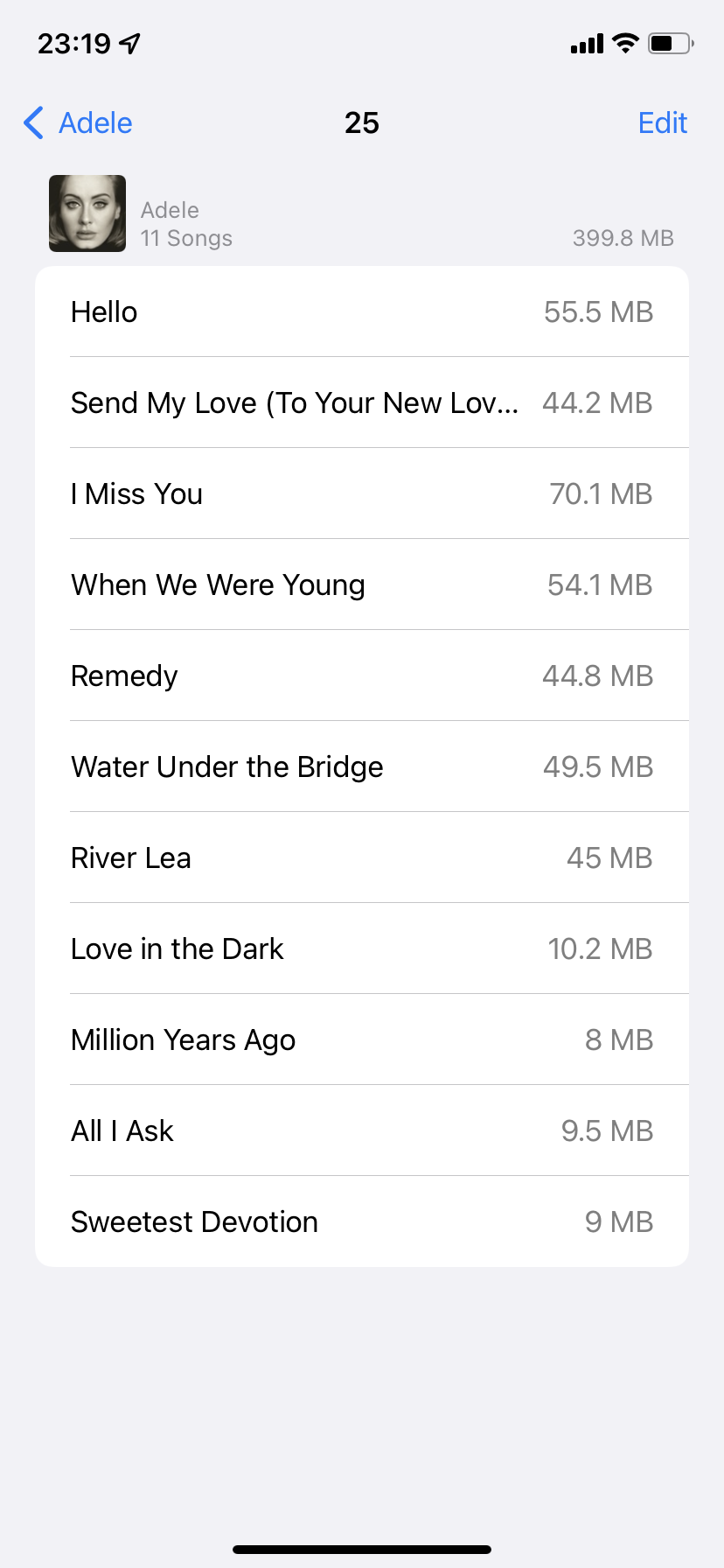 iPhoneXRから iPhone14proに機種変更をしました。バックアップをとり、データ移行をしましたが、applemusicの容量が移行前から倍以上に増えています。曲数は増えていません。一曲あたりの容量が増えています。添付の画像を参照ください。これの原因はあるのでしょうか。また移行前同様の容量に変えることは可能でしょうか。