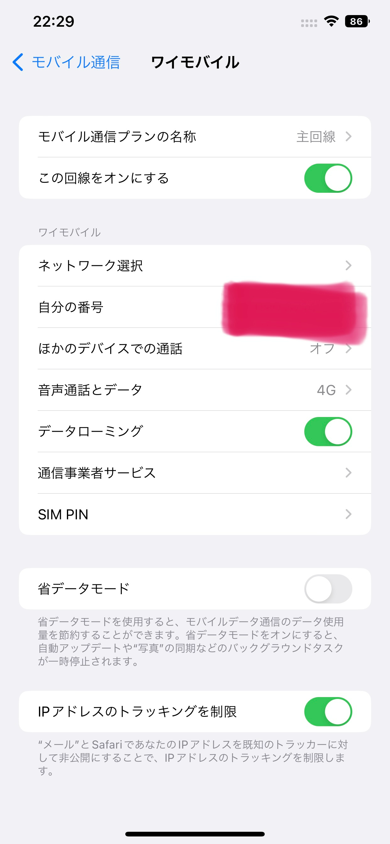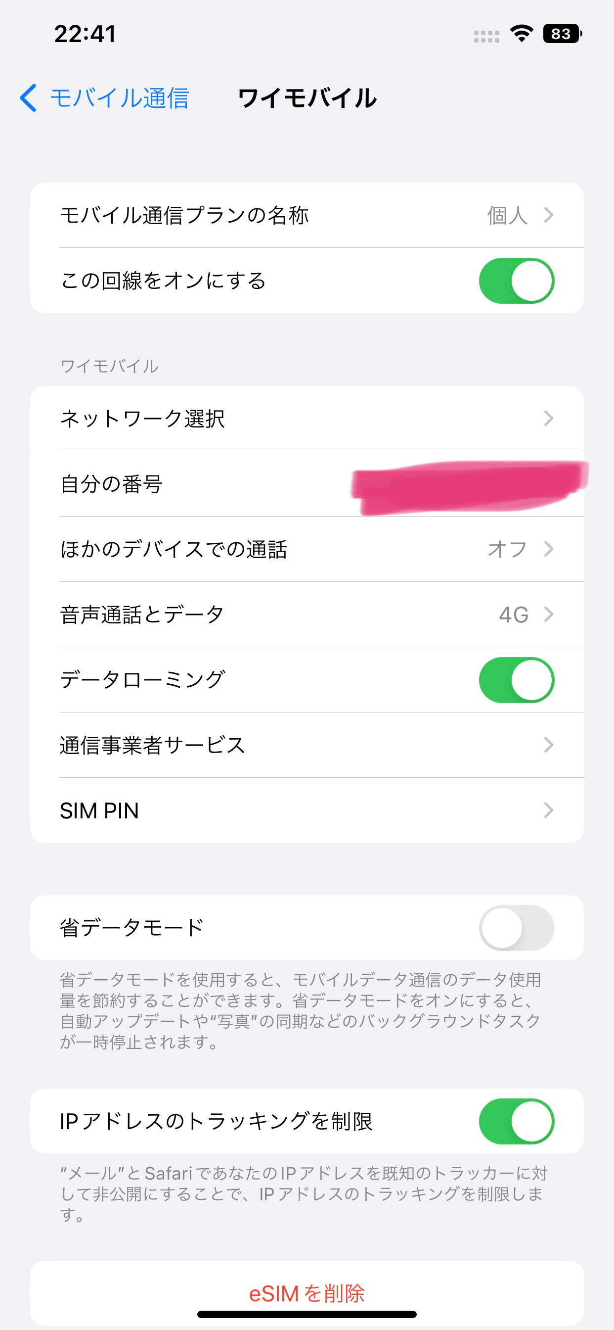 ちなみにワイモバのeSIMも契約していますがこちらも「使用できません」との表示
