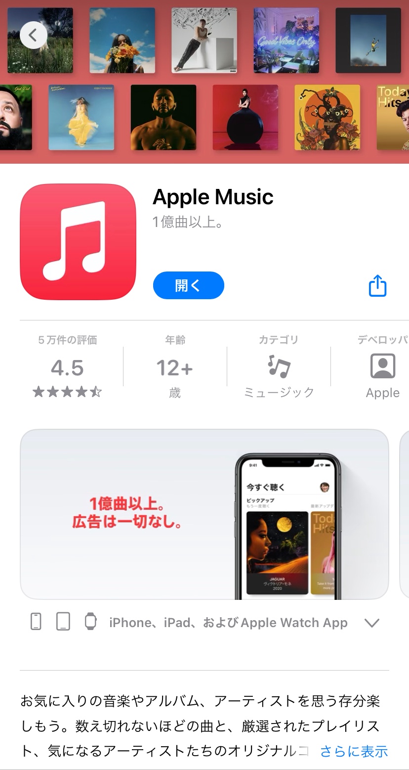 日本語環境にインストールするとアプリ名は「ミュージック」になります。