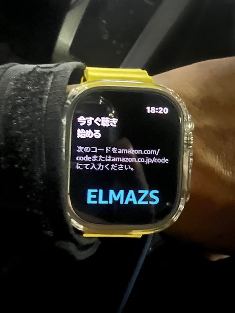 WatchのAmazonMusicアプリが起動して、Watchで使えるようにするための登録を促しているんじゃないですか?