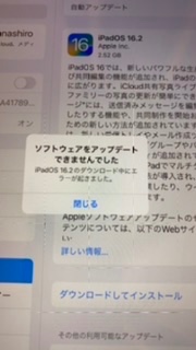 エラーの内容は「ソフトウェアをアップデート出来ませんでした。iPadOS16.2のダウンロード中にエラーが起きました。」x10回連続しています。