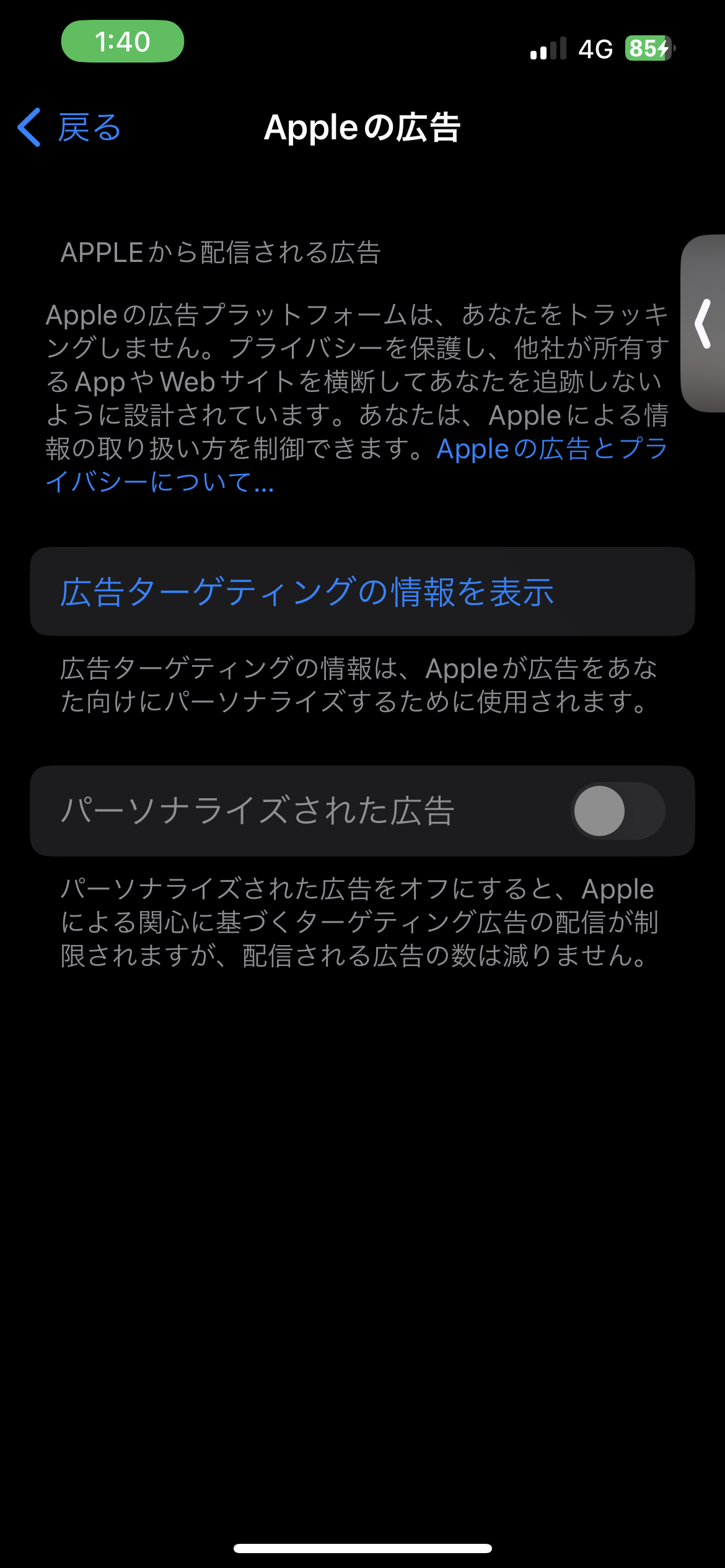 結論から言うと【Appからのトラッキング要求を許可】と【パーソナライズされた広告】のグレーアウト問題についてです。