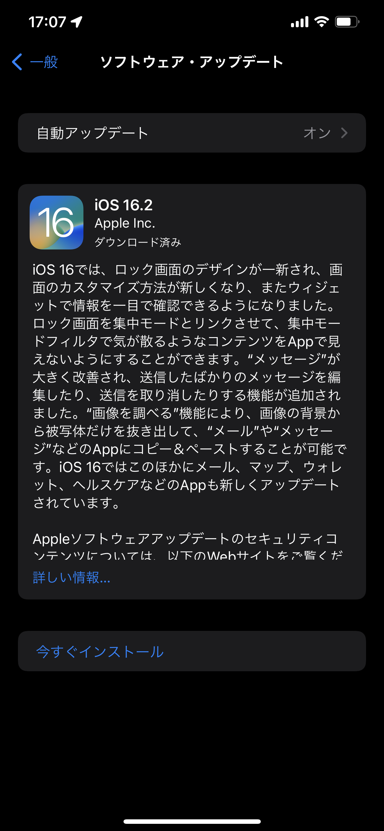 もう、iOS 16.3が出ているので、16.2の検証はできないのでは…。