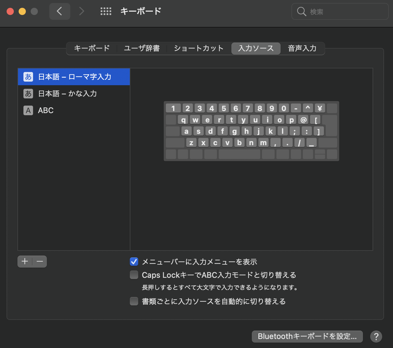 右側にキーボードだけしか見えないのは、入力ソースがABC(その他のASCII系)