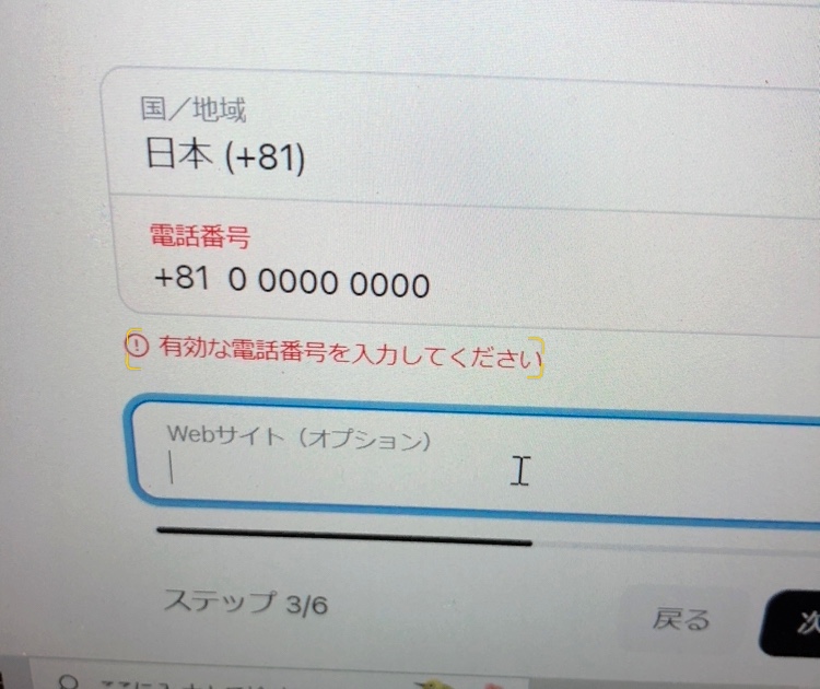 現在apple business connect にて自社の所在地等の登録を行おうとしていますが、電話番号の入力すると赤文字で(有効な電話番号を入力して下さい)となってしまいます。