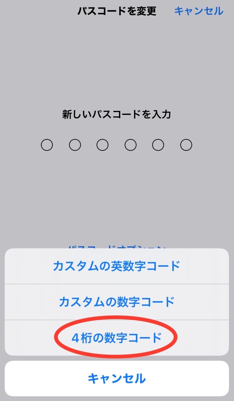 iPhoneのパスコードを4桁に変更できません。