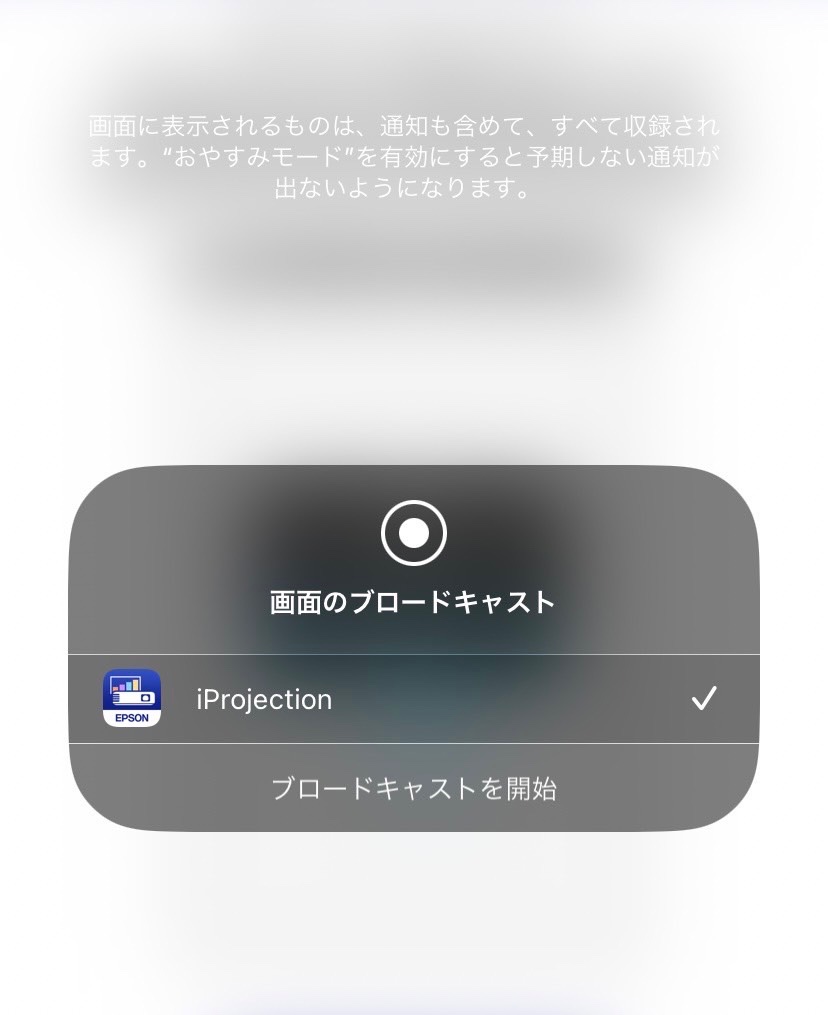メーカーさんに問い合わせたところ、収録というのはiPhoneの画面に出ている通知も、そのままプロジェクターで表示されるという確認の通知だそうです。Appleにも問い合わせたところ、ミラーリング中はiPhoneの画面収録の赤いマークが出ますが、iPhone側には保存されないそうです。