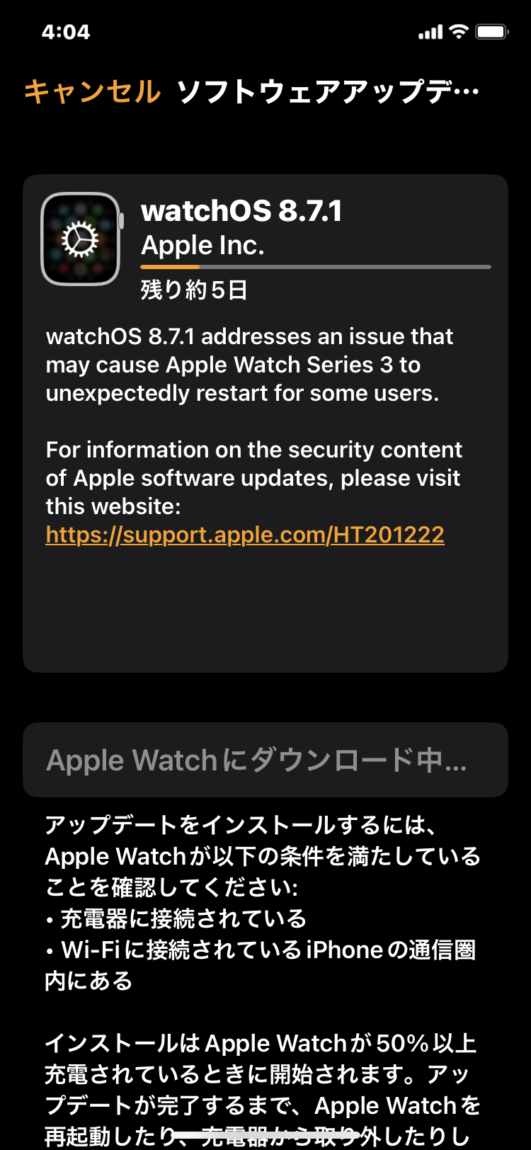 アップデート完了するまでは、画面に出てるように、充電は繋ぎっぱなしにする、母艦のiPhoneは近くに置いておくは守る必要があります。スムースに進めばせいぜい20-30分でアップデートは完了するはずです。