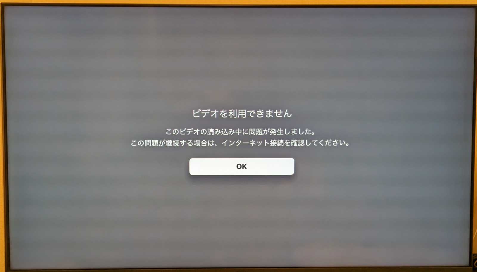 本編が始まろうとするところで「ビデオを利用できません」と表示されます。