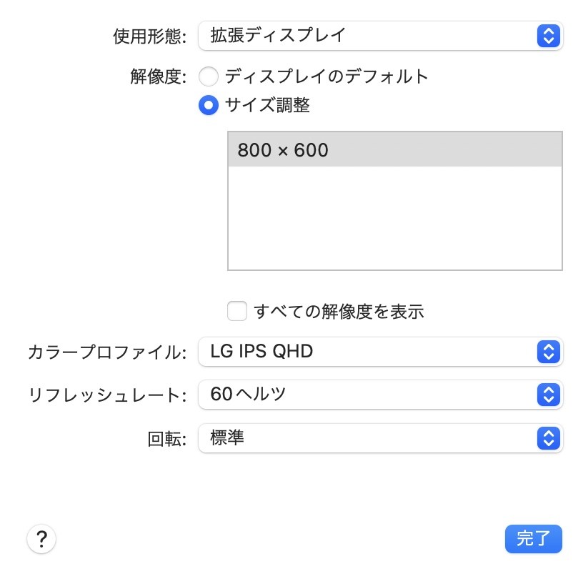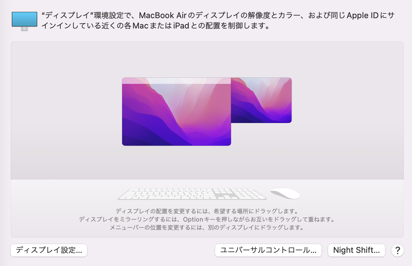 拡張ディスプレイと Mac 画面の大きさが逆になっています