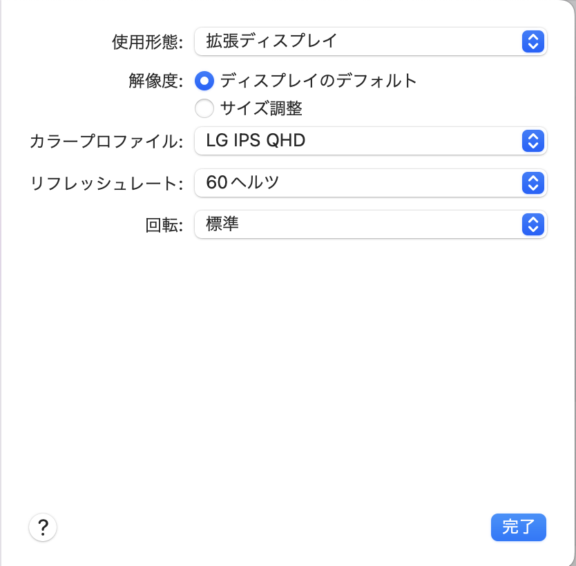 拡張ディスプレイとmac画面の大きさが逆になっています。(拡張ディスプレイの方が小さい)