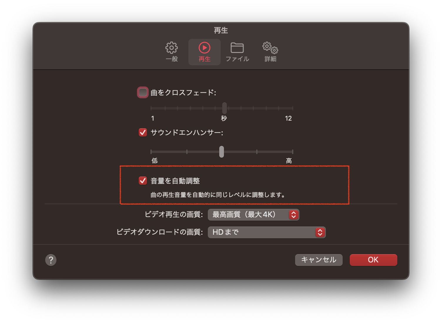 で、環境設定の「音量を自動調整」がオンのときにはこのタグ情報を適用して音量を調整する。