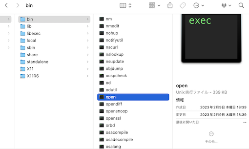 M2 MacBook AirをVentura13.2.1にアップデートしたのですが、ログイン項目に「開発元を識別できない項目です。」と記載された「open」というUnix実行ファイルがバックグラウンドでの実行を許可「ON」で表示されるようになりました。