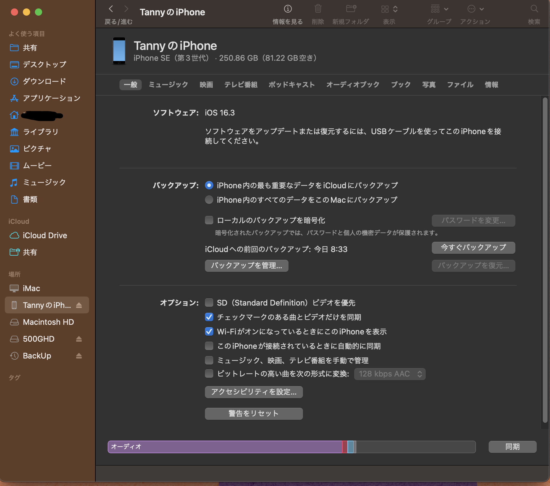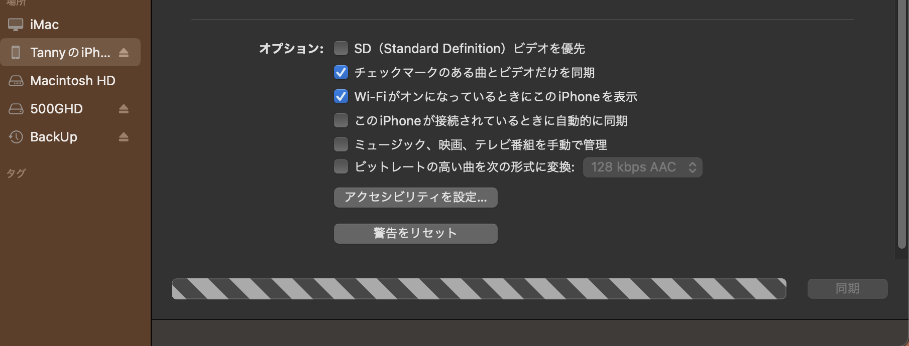 wi-fi で Mac と iPhone を繋いでいるときに 同期をしようとすると サイドバーから iPhone の表示が消えてしまい、同期できません。