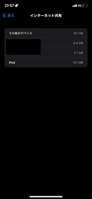 データ通信使用量の欄の、インターネット共有のところに知らない端末の名前が並んでいます。普段使っているiCloudのアカウントでログインしていて使用している端末はiPadとiPhoneだけで、パソコンなどは一切使用していません。あえて言うなら、テレビに接続してYouTubeを見るくらいですが、WiFi使ってるので関係ないと思います。
