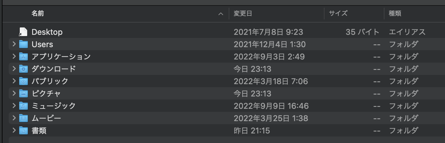 ユーザーのホームから開いてみました。デスクトップが「エイリアス」になっています・・