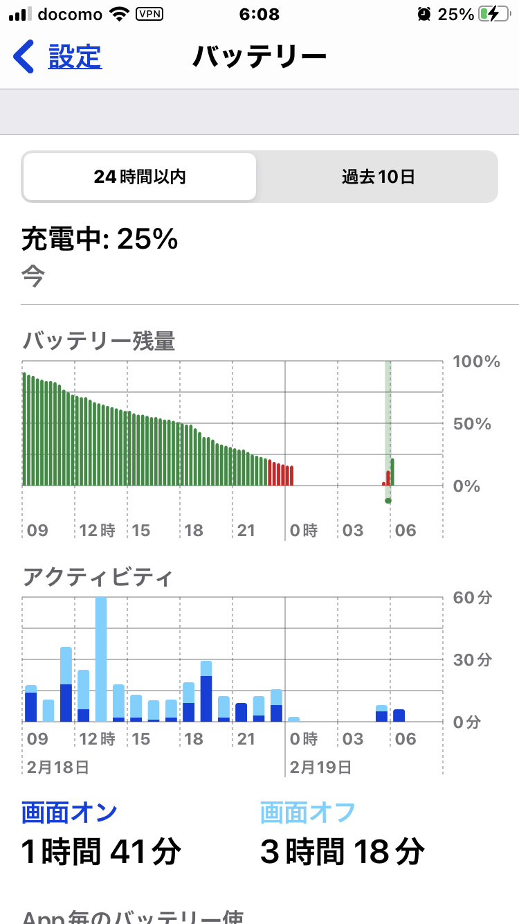 この状態で1〜2日iPhoneを使用して、バッテリー異常が続くか様子を見る。