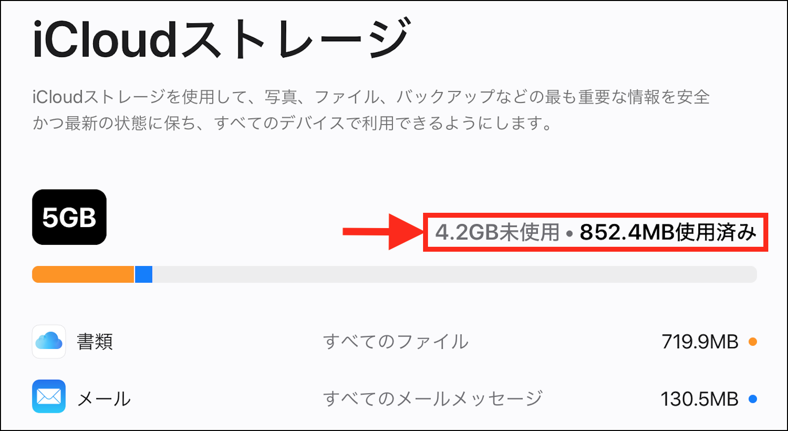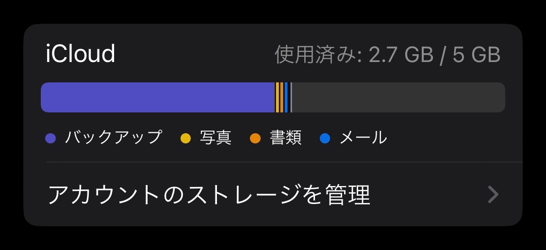 内容は『iCloudストレージの使用容量がもう少しで上限に達します。残りのストレージ容量は合計5GBのうち552.7MBです。』