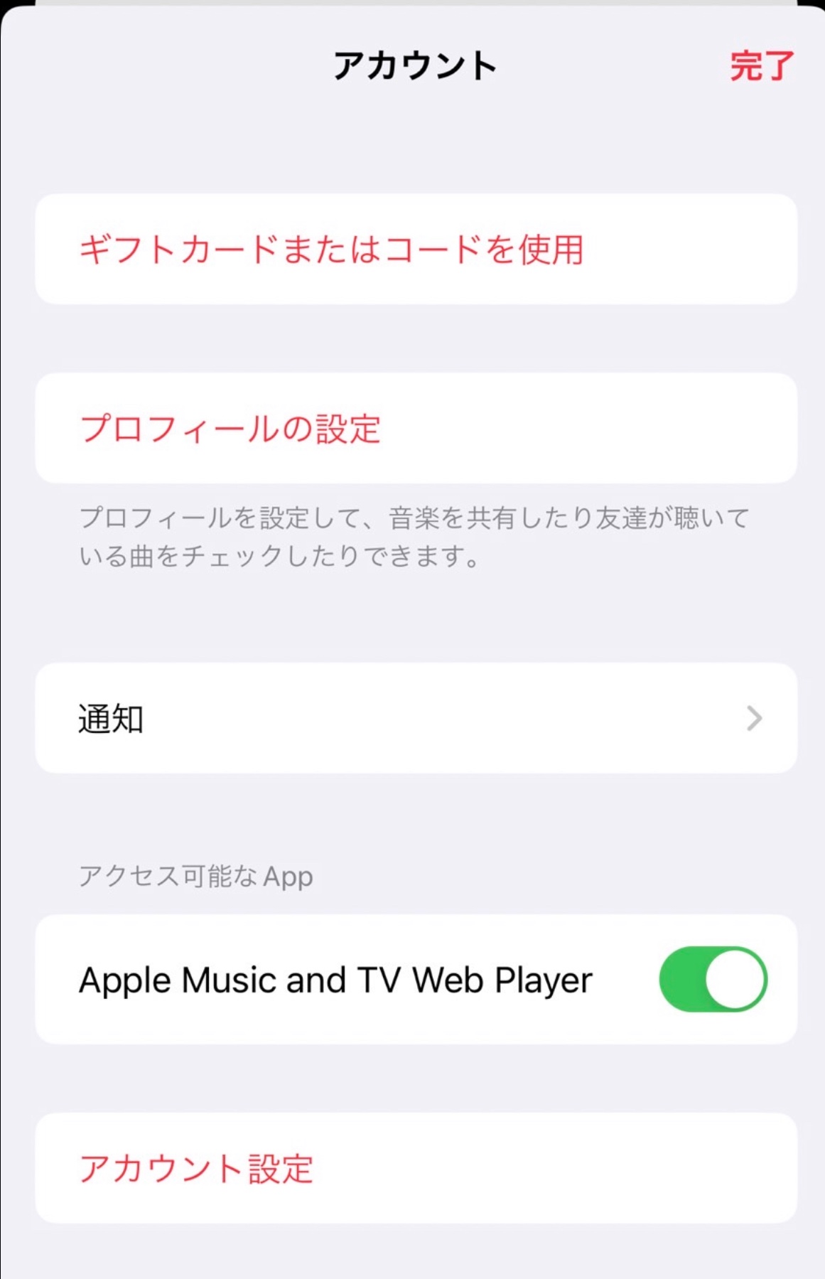 ミュージックアプリのアカウントに、サブスクリプションの管理がありません。